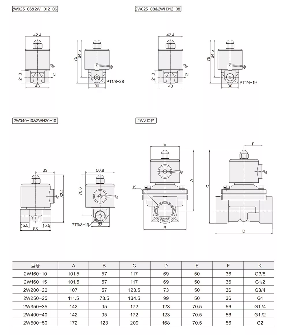 Den 2W 2-vejs pneumatiske magnetventil normalt lukket magnetventil har et direkte virkende design, bygget med et præcisionsbearbejdet ventilhus, højtydende spole, rustfrit stål stempel og pålidelige tætningskomponenter. Denne serie omfatter to strømningstyper: en lille-flow-model til standardsystemer og en stor-flow-model til højkapacitets-væskestyring.