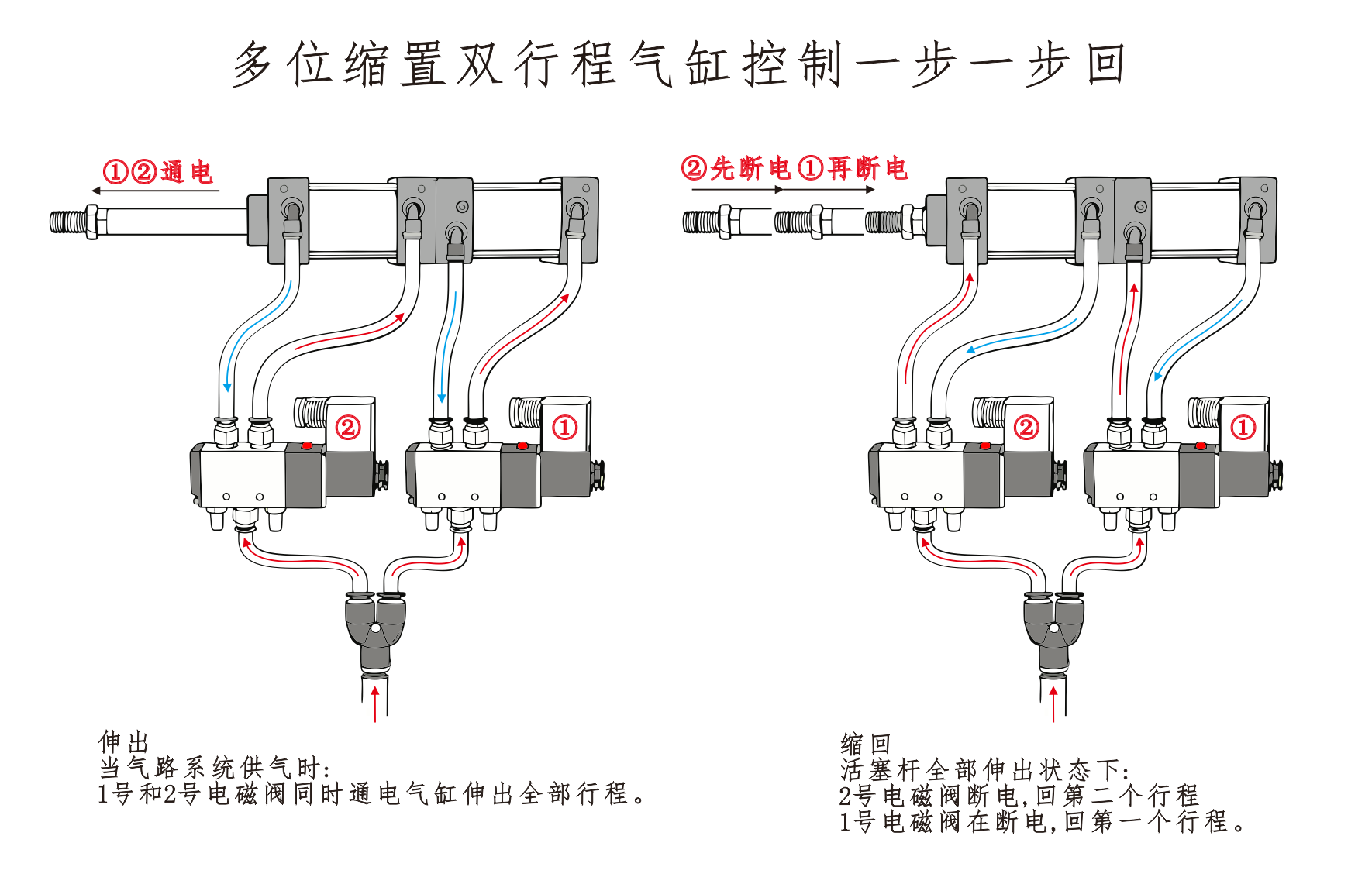 Pneumatiske kontrolskemaer til multipositionscylindre