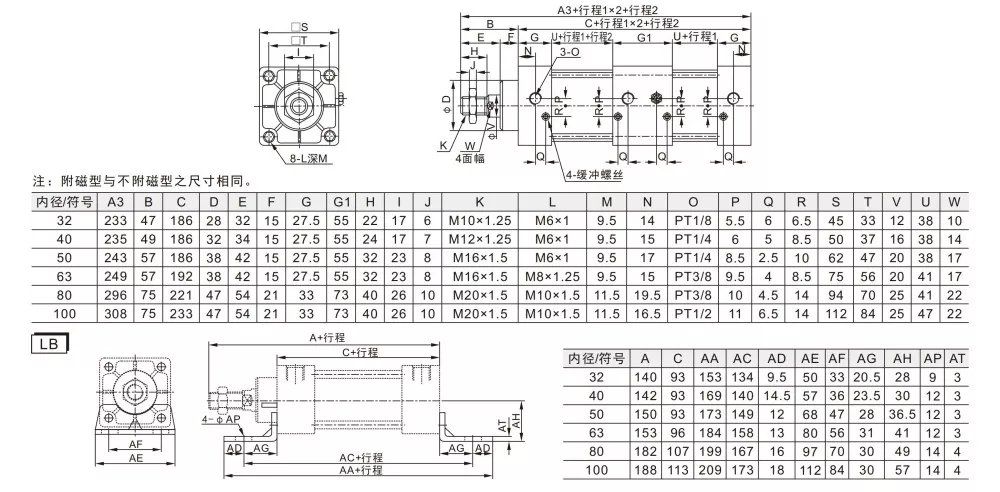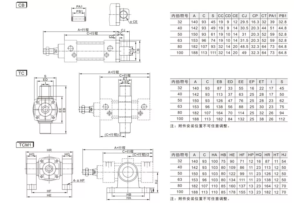 ·Forskellige cylinderspecifikationer og monteringstilbehør er tilgængelige for kunderne at vælge imellem.