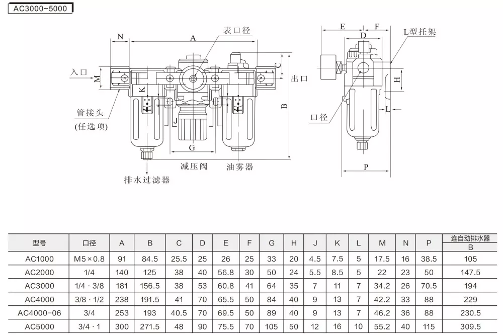 AC1000:0,05-0,7 Mpa (0,51-7,1 kgf/cm³)