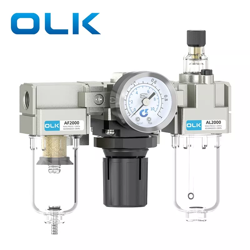 SMC Type AC FRL Unit (Filter-Regulator-Lubricator) er en pneumatisk grundlæggende komponent, der integrerer luftkildefiltrering, trykreduktion og regulering samt smørebehandling. Det giver ren, stabil og smurt trykluft til pneumatiske systemer og forlænger derved levetiden af pneumatiske komponenter og forbedrer systemets stabilitet. OLK AC Series FRL-enheden fungerer som den væsentlige "vogter" af moderne pneumatiske systemer.
